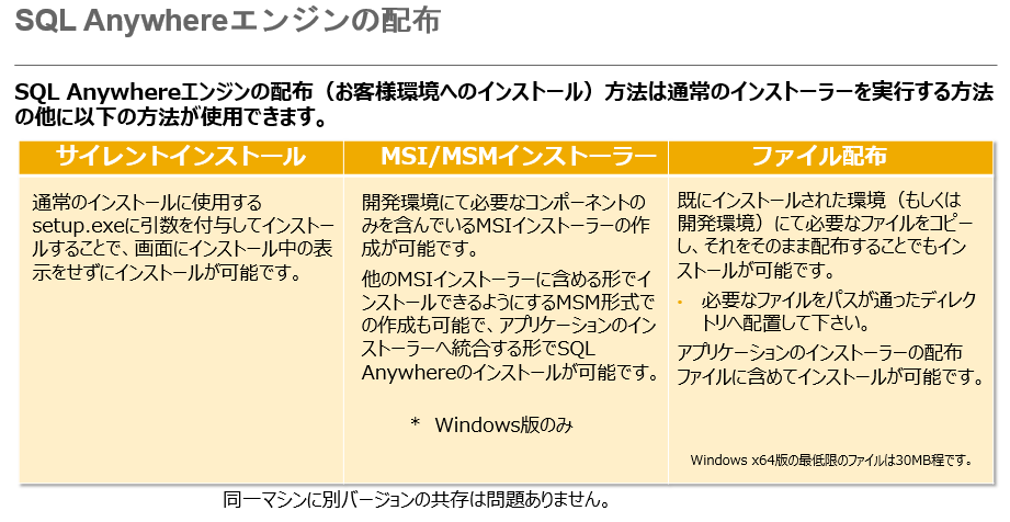 インストーラー作成ツールなどを利用したSQL Anywhereを埋め込んだアプリケーションのインストールは、3分程度で終わってしまうものもあります。