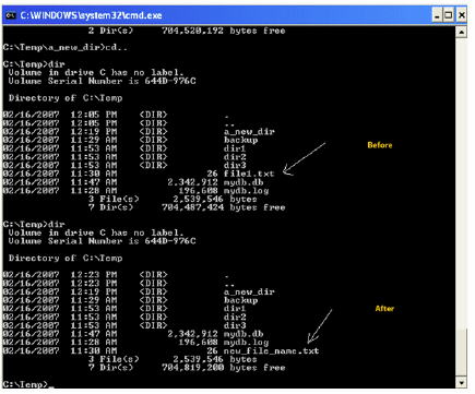 10. 既存のファイル C:\temp\file1.txt の名前を変更します。